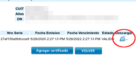 En la siguiente pantalla verá un link para descargar su certificado. Por favor descárguelo.